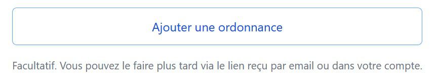En cliquant sur "Ajouter une ordonnance", vous pourrez nous communiquer les informations manquantes (numéro de sécurité sociale et date de naissance), et nous transmettre l'ordonnance en photo ou scannée :